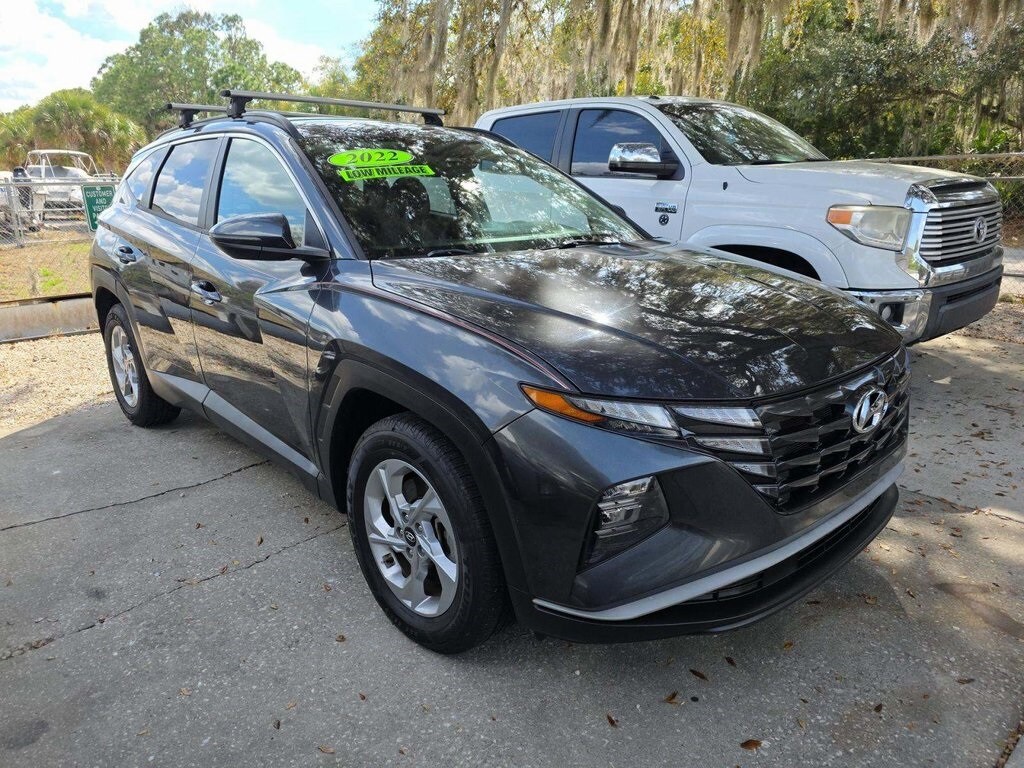 GREAT SERVICE RECORDS, REARVIEW CAMERA, BLIND SPOT MONITOR, HEATED SEATS, Air Conditioning, Apple CarPlay & Android Auto, Auto High-beam Headlights, Brake assist, Cargo Net, Cargo Package, Cargo Tray, Delay-off headlights, First Aid Kit, Fully automatic headlights, Heated door mirrors, Option Group 01, Power steering, Power windows, Remote keyless entry, Steering wheel mounted audio controls, Traction control, Wheels: 17" x 7.0J" Alloy. **OUR BEST PRICE UPFRONT, EVERYDAY AND FOR EVERYONE. See Dealer for details.** CARFAX One-Owner. Gray 2022 Hyundai Tucson SEL FWD 8-Speed Automatic with SHIFTRONIC 2.5L I4 DGI DOHC 16V LEV3-ULEV70 187hp